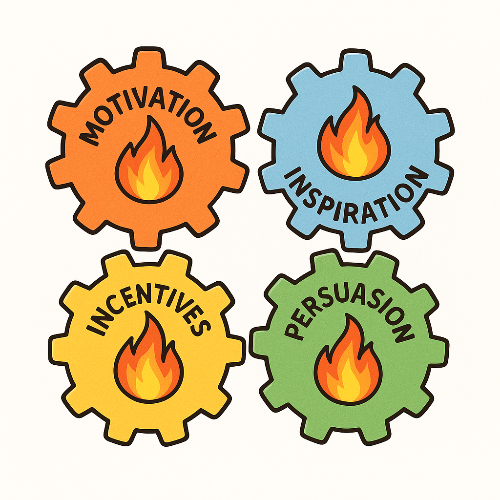 Motivation is the flame, Inspiration is the spark, Persuasion is the breeze that makes it spread, Incentives are the gentle hands that fan it forward.