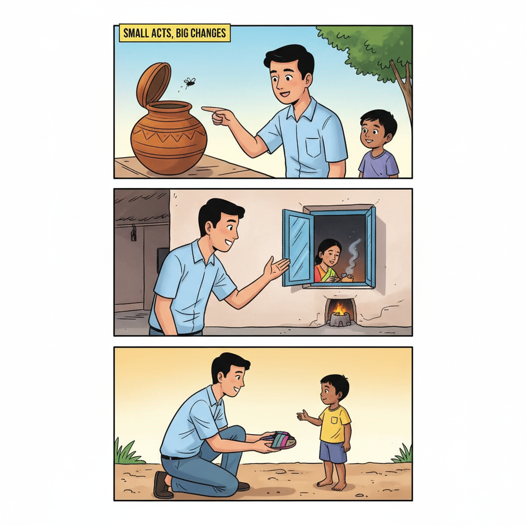 You’ll find joy in small victories — a covered water pot, a new mosquito net, a clean handwashing area.