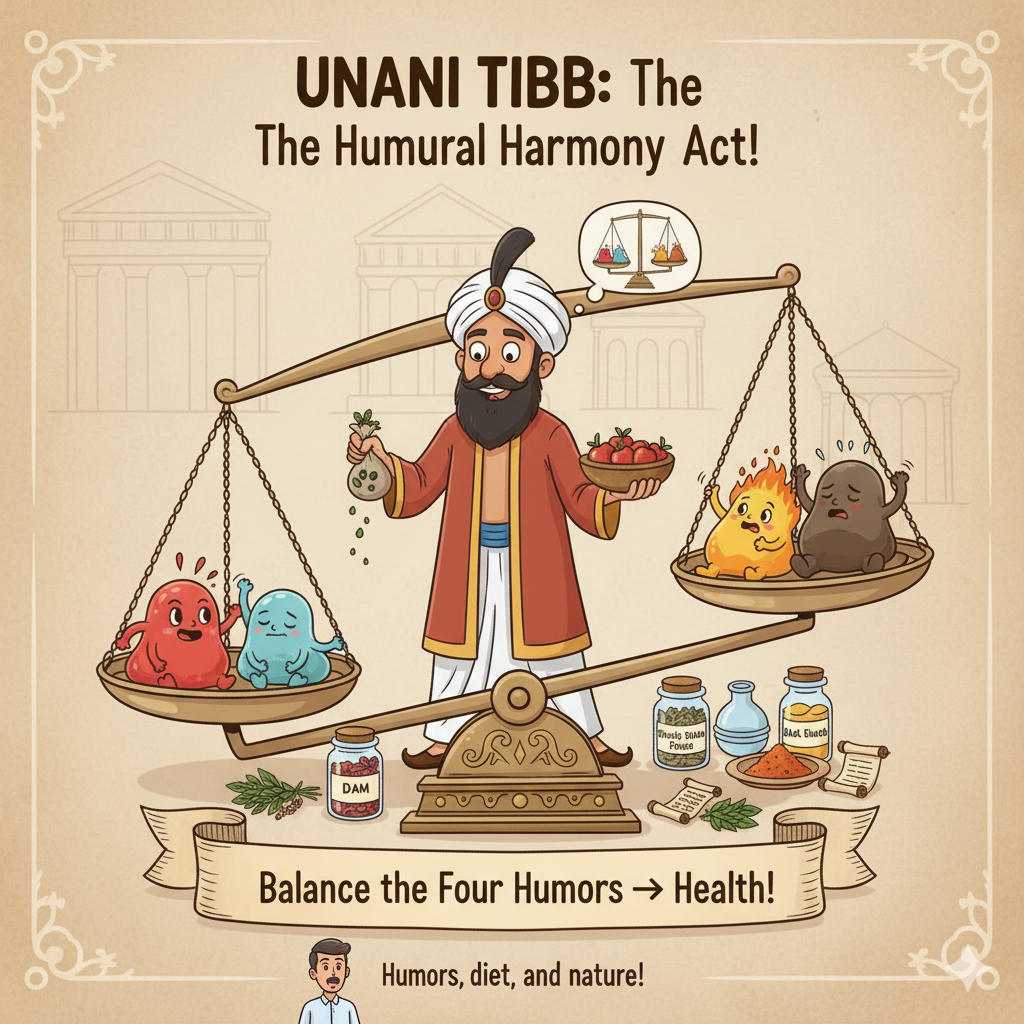 Origin: Ancient Greece (developed by Hippocrates), later refined by Arab physicians, and brought to India by the Mughals.